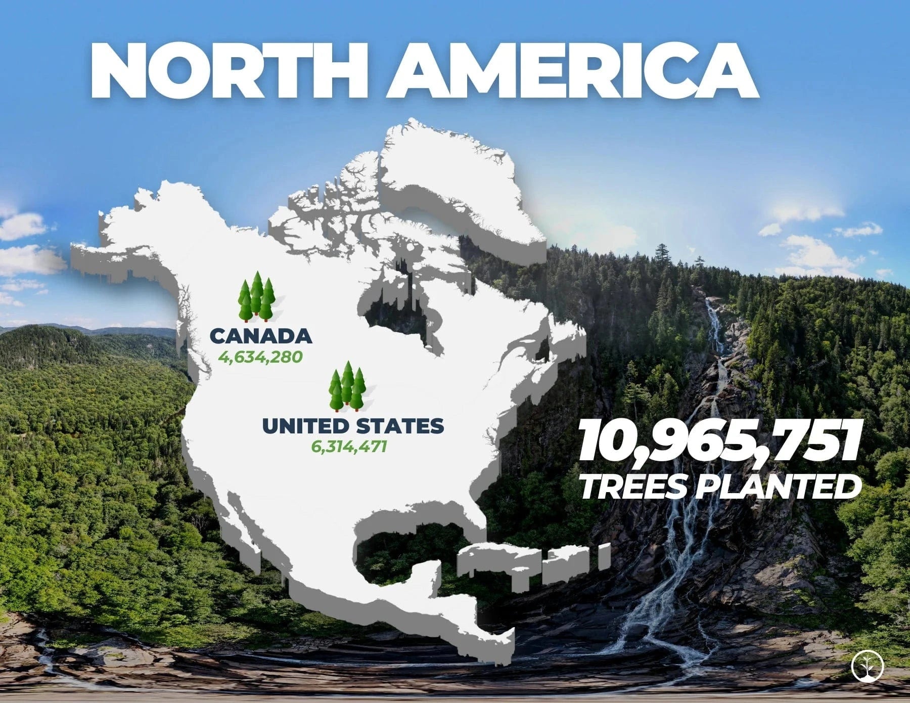 This year, a total of 10,965,751 trees were planted in Canada and the United States. Of these, 5,464,565 trees will help restore 6,287 hectares of land that were burned in wildfires. Another 7,326,085 trees will protect and restore 8,908 hectares of critical watersheds and riparian areas.