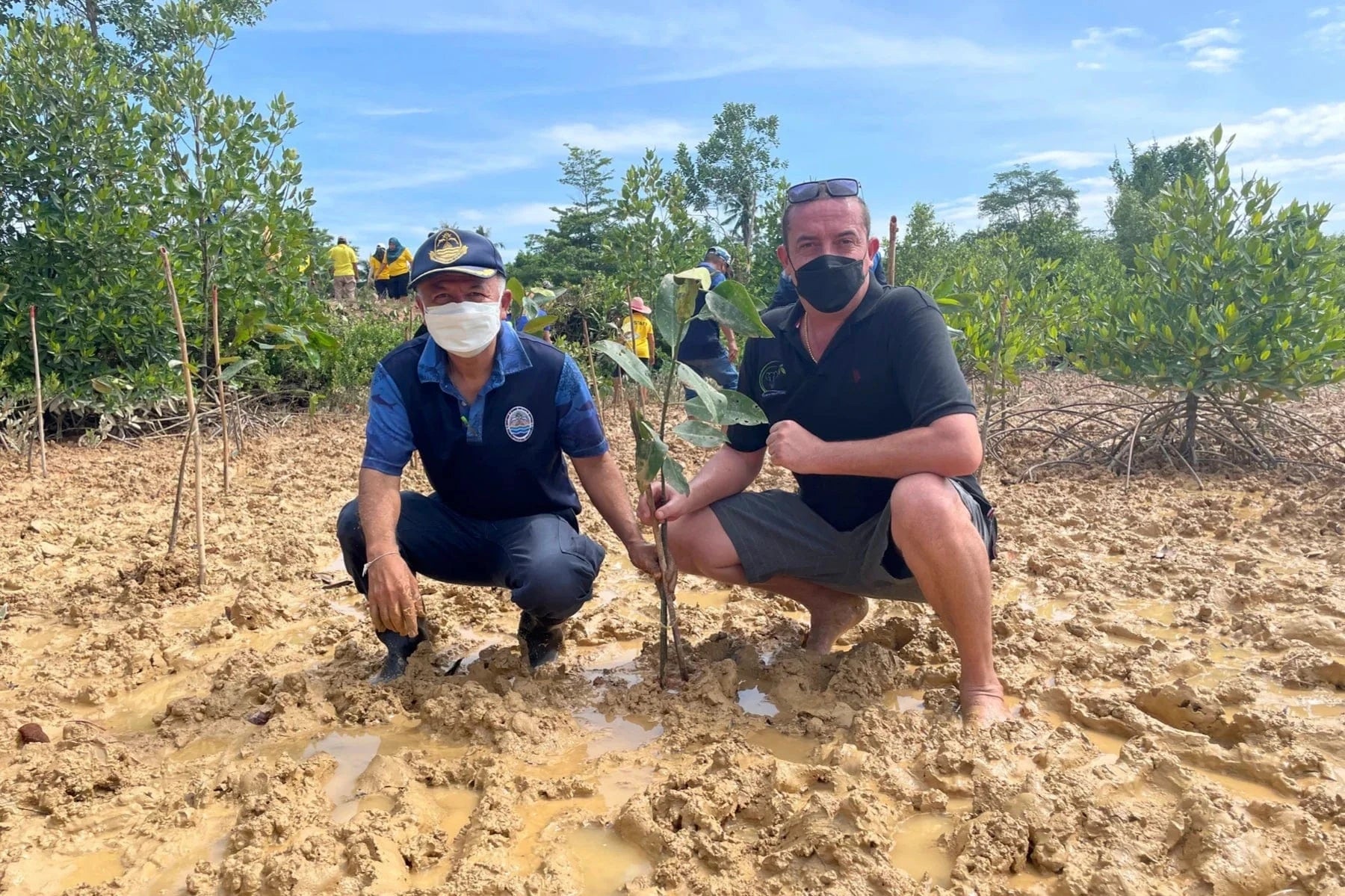 In Ban yuan mai, Jemilang, Mueang Satun, Thailand, 70 volunteers (including 20 youth) planted 2,000 black mangrove trees to restore coastal habitat at an abandoned shrimp farm.