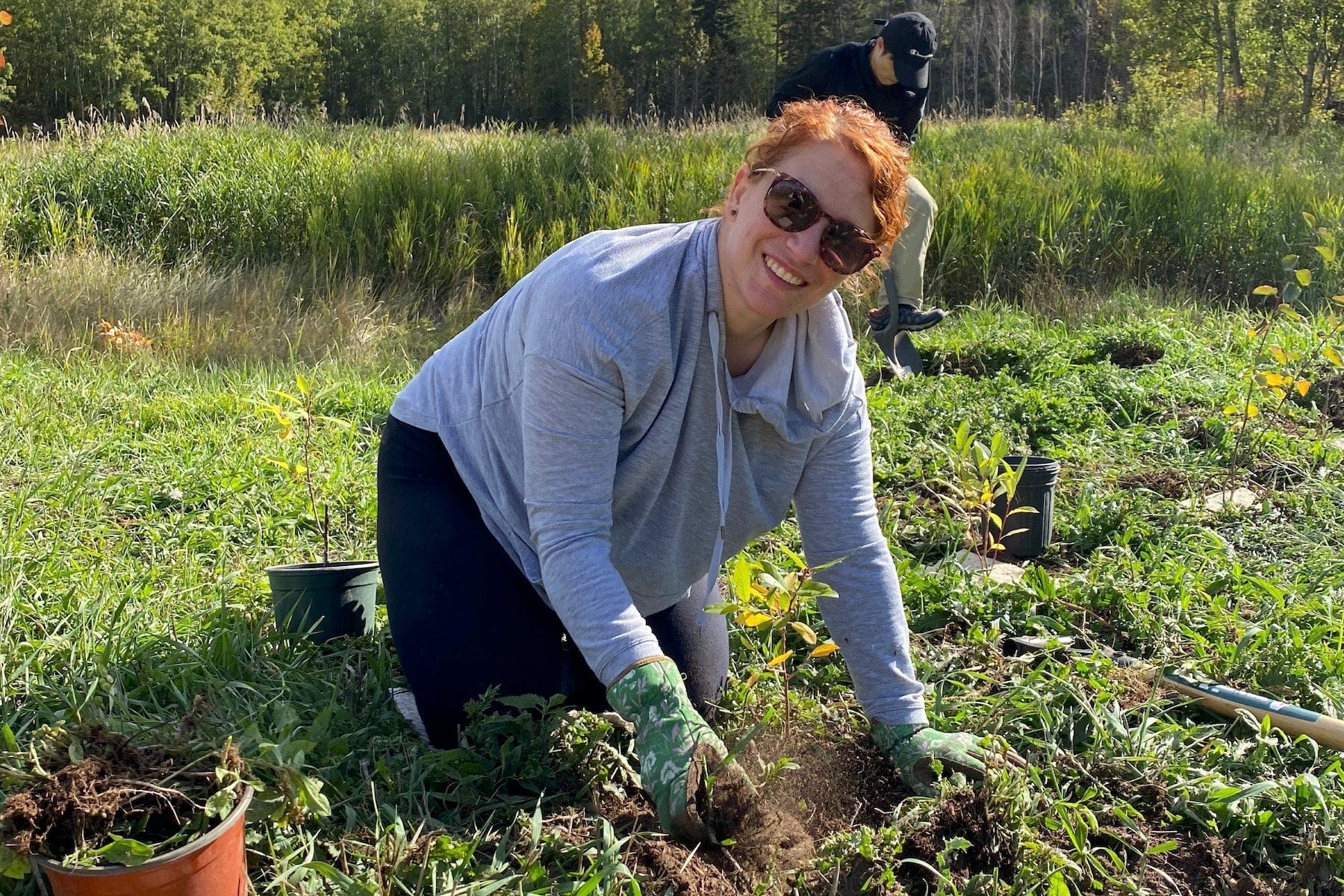 In Edmonton, Alberta, Canada, 13 volunteers planted 110 native trees and shrubs as part of an ongoing native pollinator garden project. The purpose of the planting was to restore native wildlife habitat that has been overtaken by invasive species. The species planted will provide habitat and an early spring food source for local wildlife, sequester carbon over time, and more!