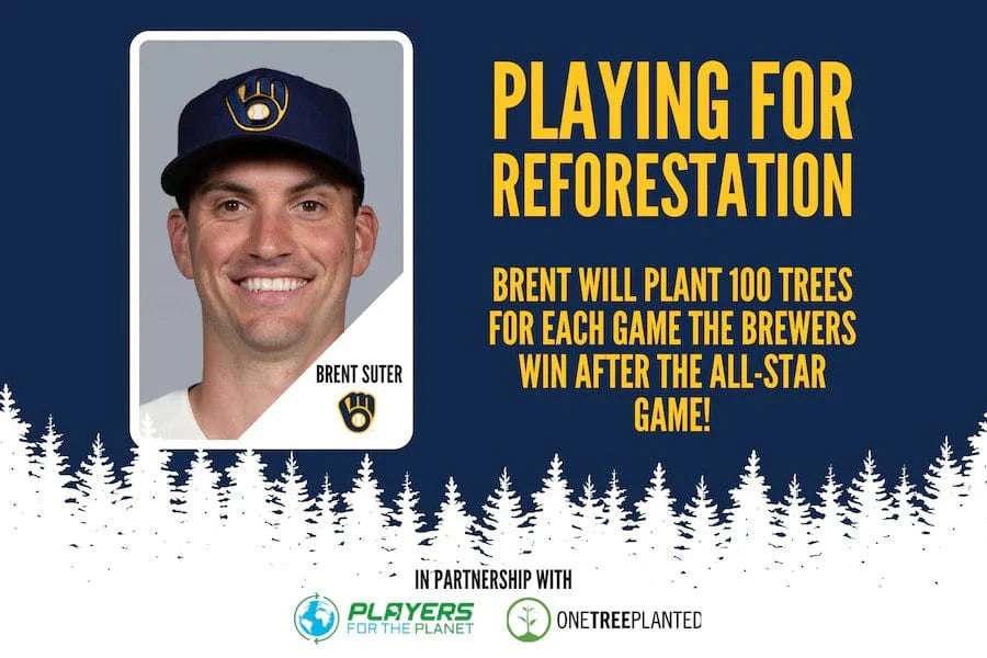 Brent pledged to plant 100 trees in a fruit tree reforestation project in India for each Brewers win after the All-Star Break, and also funded a small tree planting event in Milwaukee! In addition to his campaign, he invited his fans to make a donation to plant trees in a United States Forest Service reforestation project.