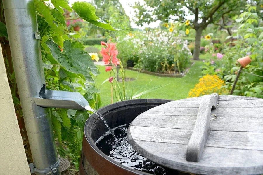 Depending on your local ordinances and rainfall, you may be able to collect rain to help water your garden. You can either purchase one that's made with eco-friendly materials or go the DIY route and retrofit an old, clean barrel or garbage can with a lid, a spigot and a downspout. It may take a little effort to set up, but it'll be worth it over the long term!