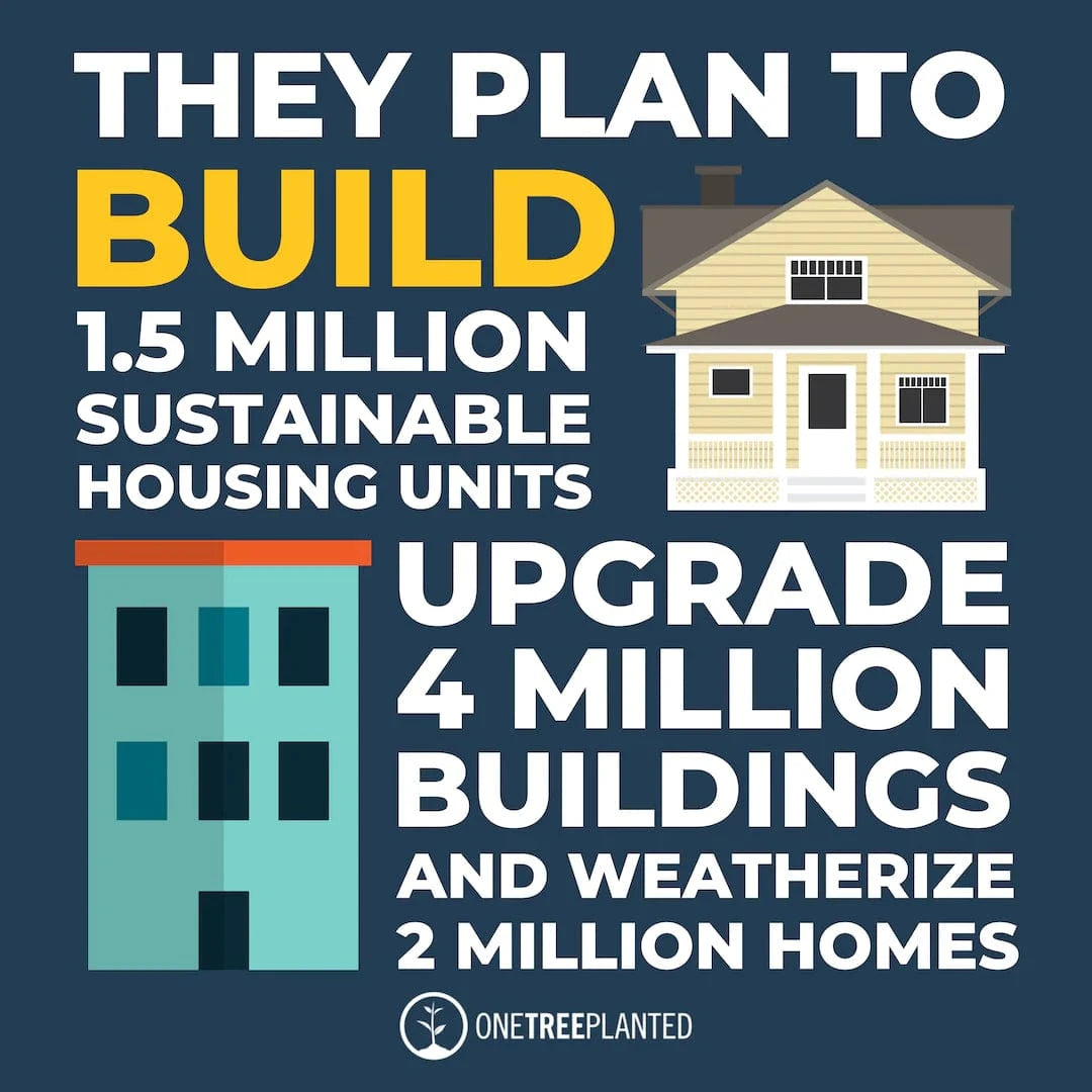 Both address the connection between housing insecurity and the climate crisis. However, while the Green New Deal calls for "providing all people of the United States with affordable, safe, and adequate housing,” Biden's plan falls far short of that. Still, it draws the connection between unaffordable housing in job centers and high emissions due to increased traffic and long commutes. To combat this, he wants to build 1.5 million sustainable homes and housing units, upgrade 4 million buildings, and weatherize 2 million homes over the next 4 years.