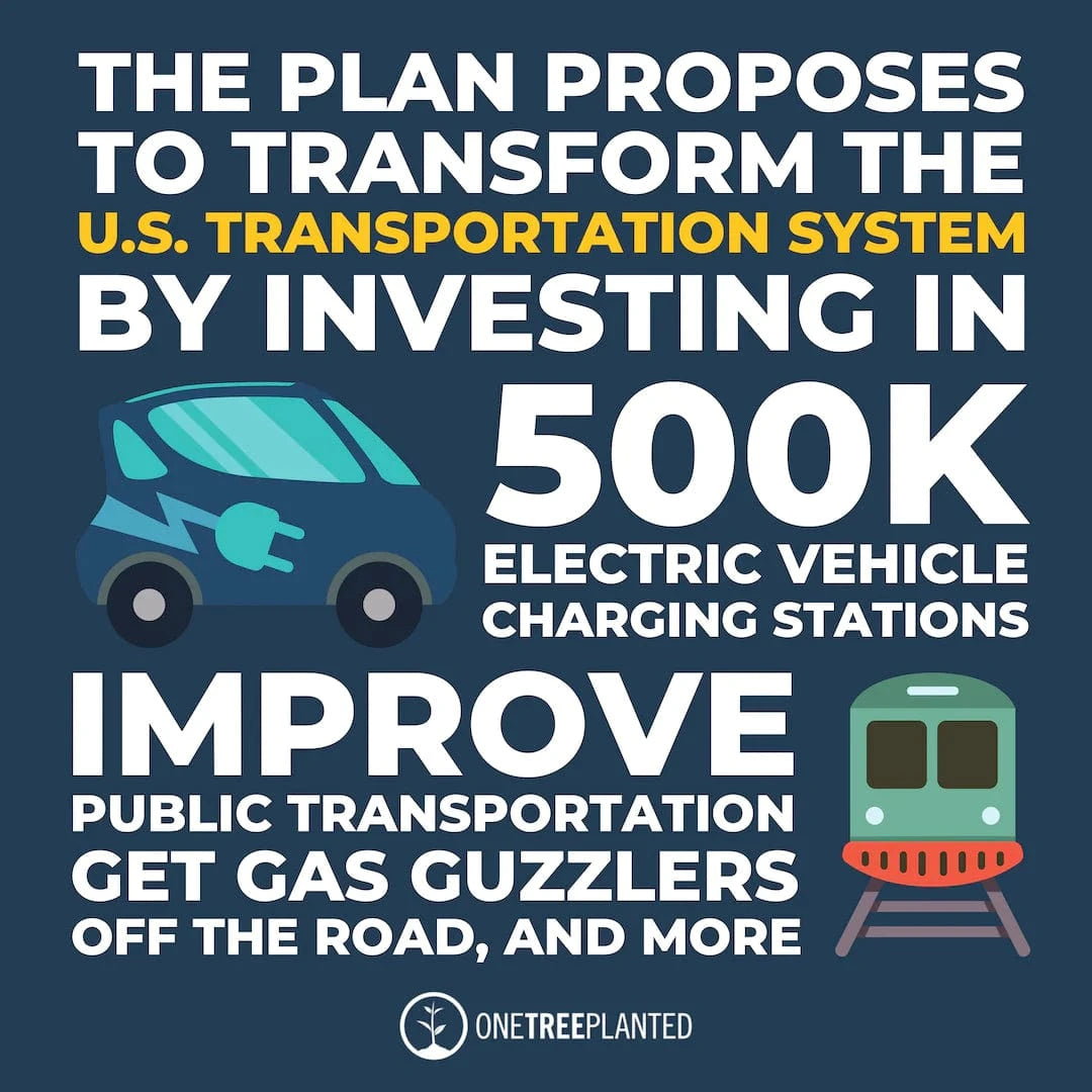 Both plans aim to overhaul America’s transportation industry by building an accessible public transportation network and pushing widespread adoption of hybrid and electric vehicles. Biden’s plan proposes creating a new “cash for clunkers” style program to get gas guzzling cars off the road, incentivizing auto companies to build more zero-emission vehicles with rigorous fuel economy standards, investing in 500,000 EV charging stations across the country, and more. This alone would create millions of green jobs!
