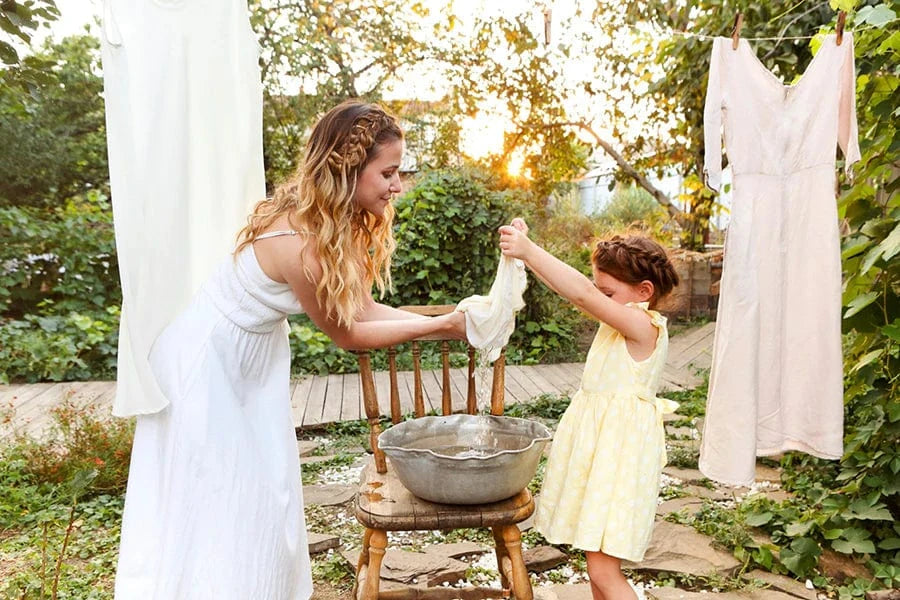 You can significantly reduce your energy use by air drying your clothes. On days when the sun is shining and the spring breeze is a' blowing, clip your clothes to a line strung across your porch or between two trees to take full advantage of those fresh air dried vibes. Don't have a yard or porch? You can still air dry your clothes indoors with indoor drying racks (just make sure it's well ventilated). Air drying your clothes will also help extend the life of the fabrics.