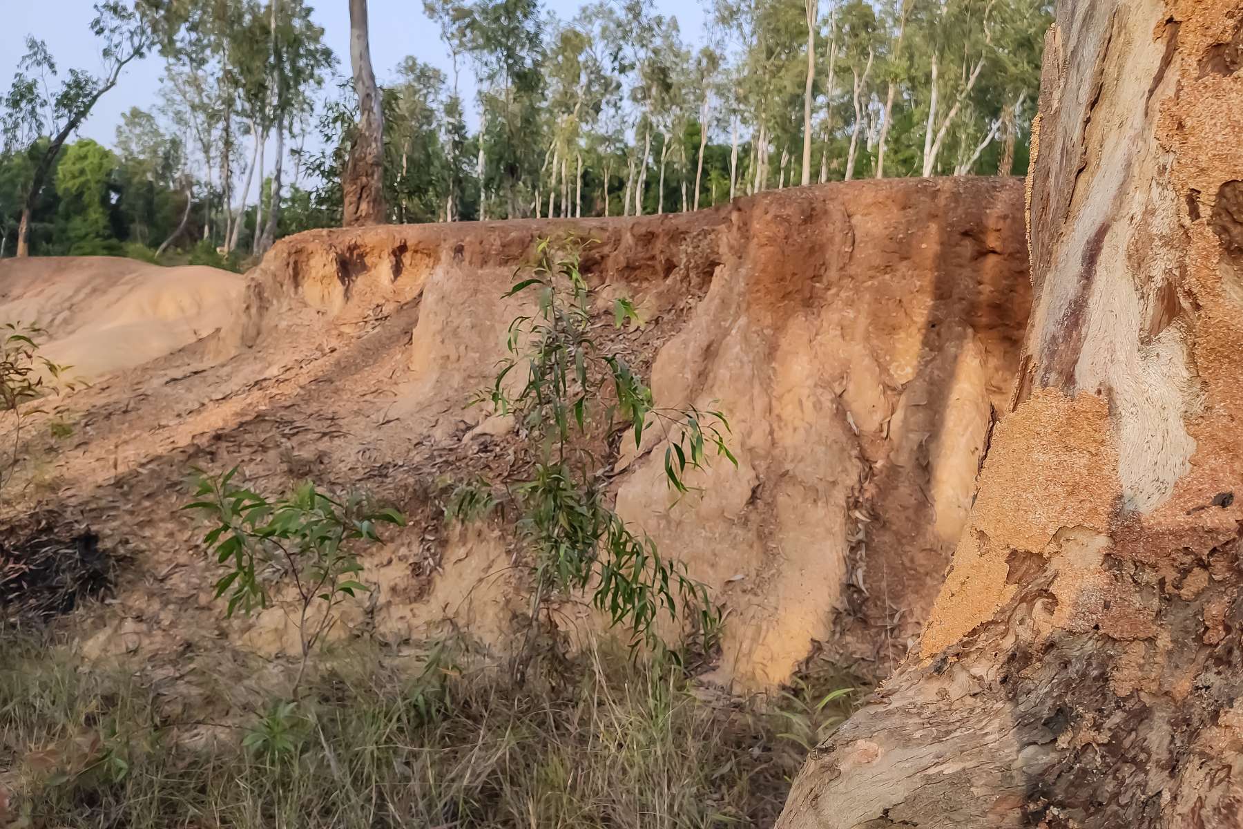 Trees have intricate root systems that help prevent soil erosion by holding the soil firmly in place. Their leaf canopies also help prevent erosion by slowing and absorbing precipitation. By helping the land retain water and remain healthy, the soil is able to provide rich nutrients to help sustain life. When deforestation occurs, soil is significantly more likely to erode. Erosion reduces soil fertility, which can negatively impact crop yields. During precipitation events, soil-laden water is also more likely to travel downstream, collecting in heavy layers of sediment that can cause significant damage to watersheds.