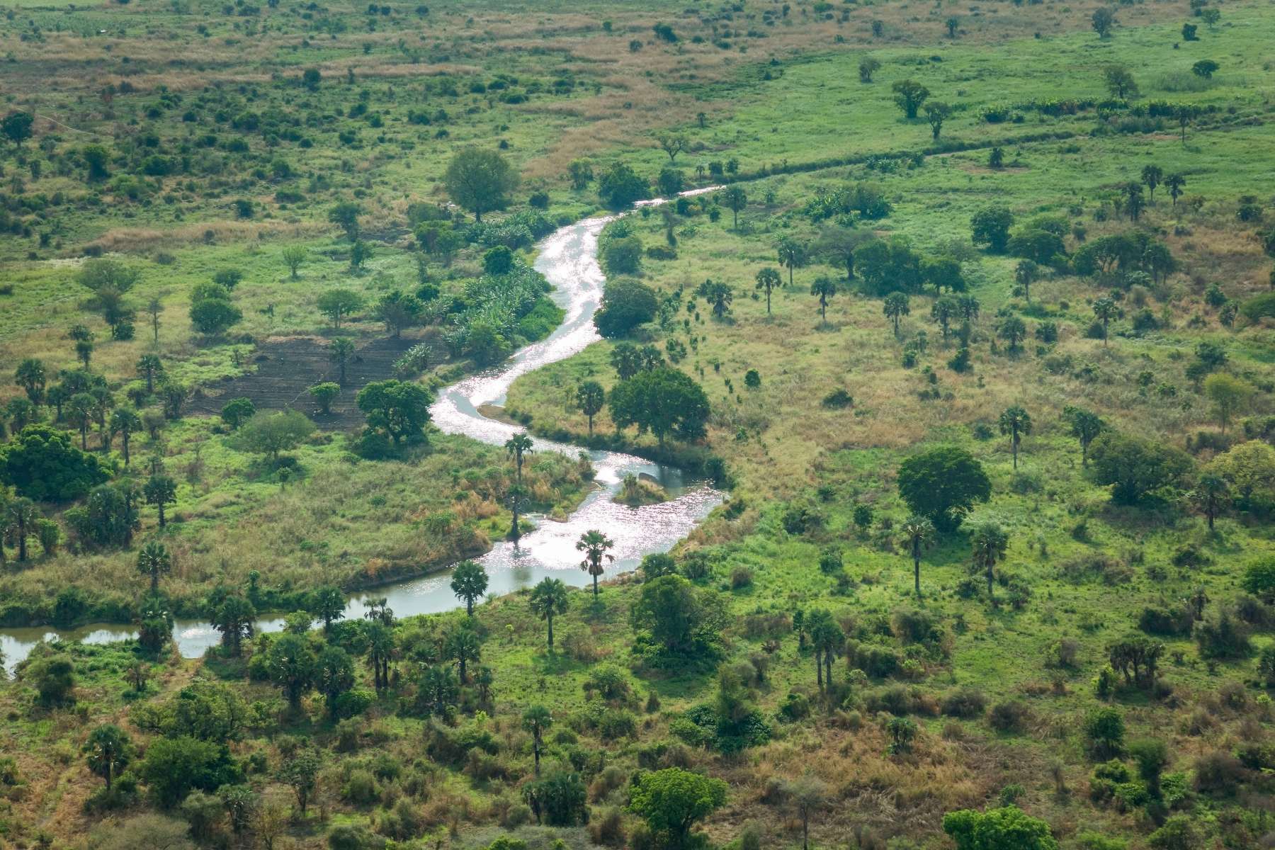 The Nile River sources from Lake Victoria in east central Africa, winding through several countries until it flows into the Mediterranean Sea.