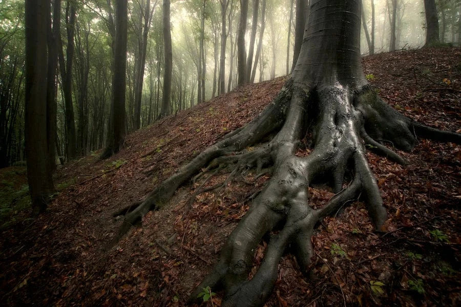 From there, the tree sapling will slowly transform into a mature tree with a deep taproot and thick lateral roots that hold the topsoil together while nourishing the rest of the tree. In some areas, like tropical rainforests, where the soil is shallow and poor, trees will grow aerial, or buttress, roots aboveground to absorb oxygen and provide extra stabilization.