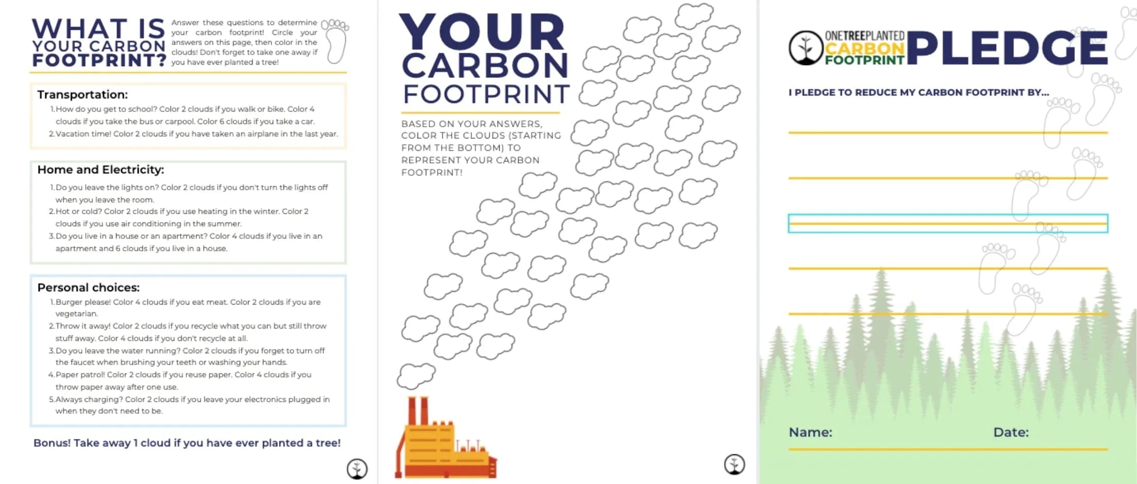 Teach your kids about what is a carbon footprint with the help of our lesson for kids. Follow along with this guide, and this powerpoint. Then, use this quiz we put together to see your family's carbon footprint, and make a pledge to lower it.