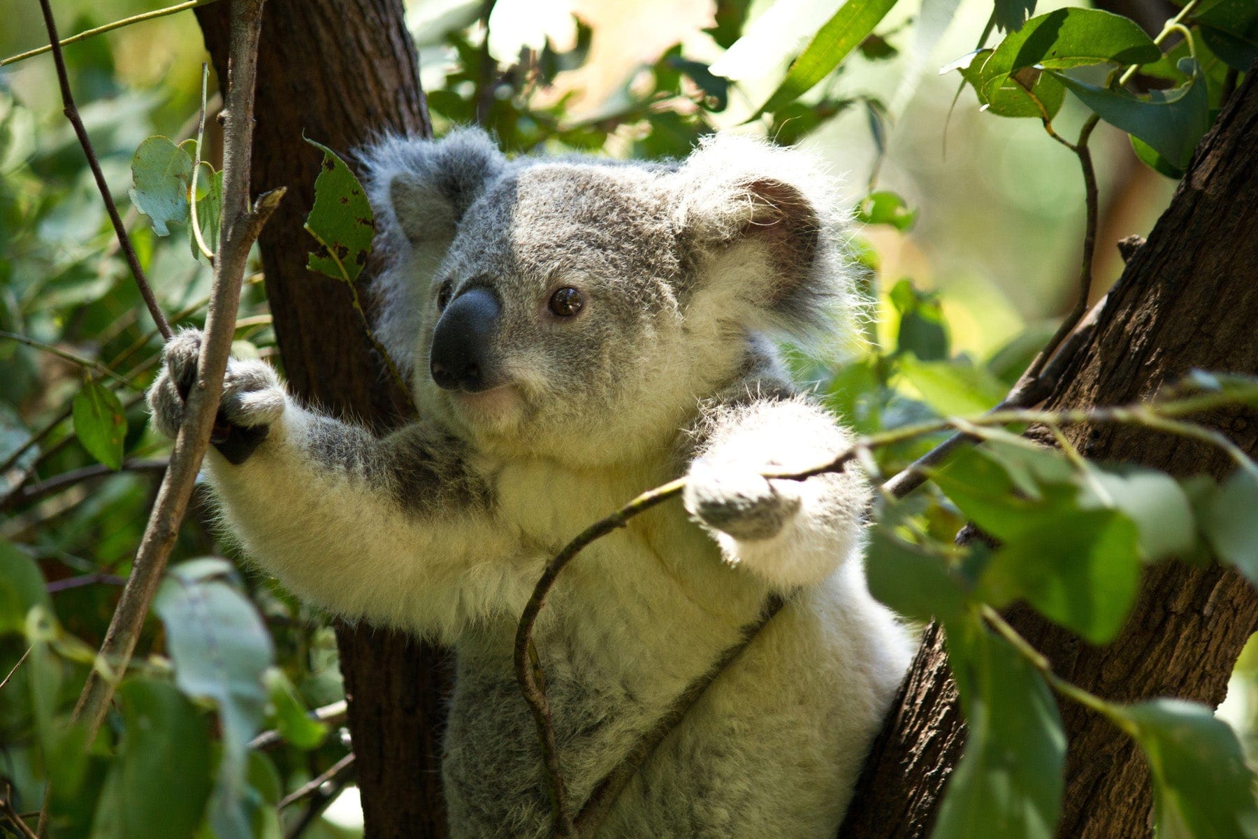 Although there are over 700 species of eucalyptus trees, koalas tend to only eat from 50. In fact, individual koalas usually have 1-3 specific eucalyptus species that they will seek out, reserving others for the occasional snack or resting spot. And even then, they will climb to the very top of the tallest trees to get the best leaves, which contain more liquid and nutrients.