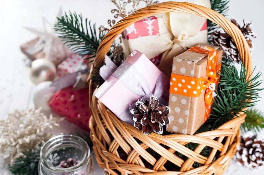 With high prices affecting everyone's holiday budget, try creating a gift basket filled with homemade body care products like soaps, lotions, bath bombs, and lip glosses — or one filled with holiday cookies, infused liquors or extracts, fudge, spiced nuts, and other delicious food items. Add special touches like homemade ornaments, a favorite bottle of wine, or a book you loved this year, and it’s bound to bring a smile.
