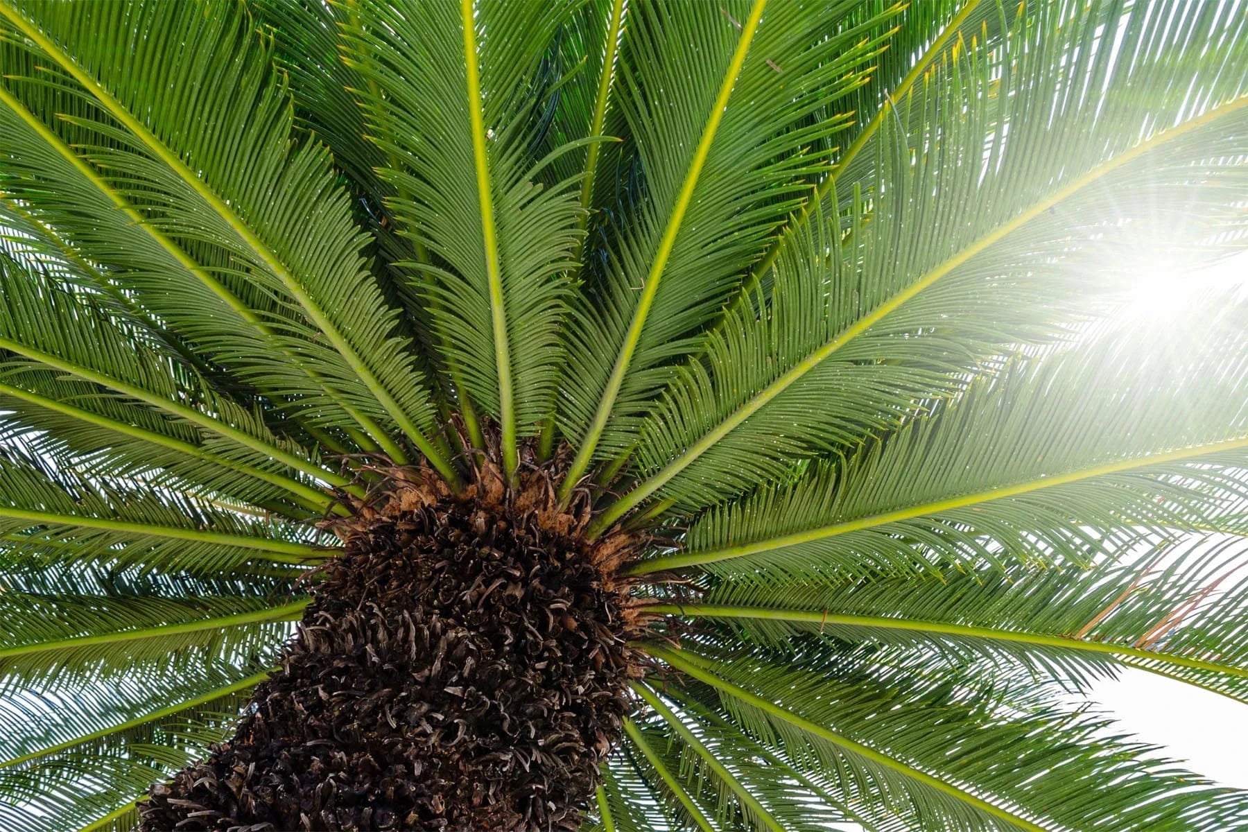 Trees in the Cycadophyta category have fleshy stems and leathery, featherlike leaves. They encompass 305 living species and grow all around the world, with higher concentrations near the equator. Cycads are typically short and squat, with attractive foliage and sometimes colorful cones. Many cycad species host blue-green algae in nodules in their roots, and some form coralline algae masses at the soil surface. Scientists believe they have a symbiotic relationship, with the algae fixing nitrogen for the trees.