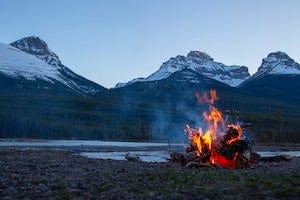 Before you light a campfire or bonfire, make sure the conditions are safe and that there are no fire bans or precautions in the area. Choose an open space that is at least 10 feet away from any vegetation, trees, or flammable debris. Always have safety tools, such as a bucket of water (or a hose if you're at home) and a shovel, within reach. When you’re done, use the "drown, stir and feel method": douse the fire with water, stir it around to ensure everything is equally soaked, mix in soil to smother any remaining heat, and wait until it’s completely cold to the touch before leaving your campsite or going to bed. Never leave a fire unattended.